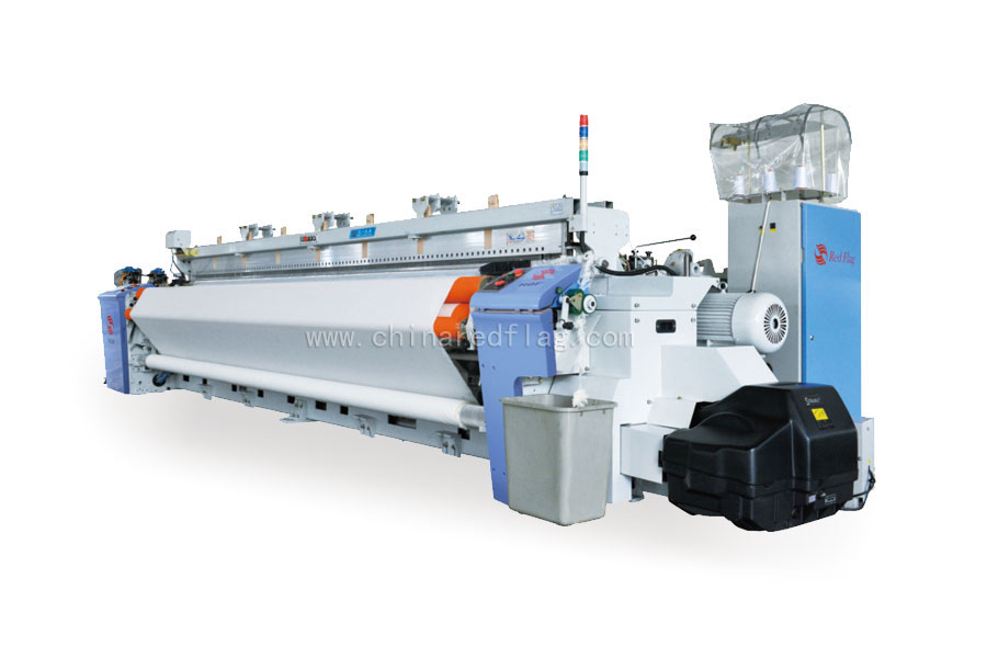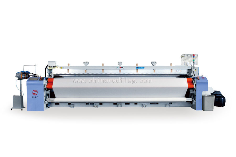 天一紅旗一直在對噴氣織機(jī)寬幅織造方面進(jìn)行探索與研究,460織機(jī)采用左右雙織軸,變氣壓,變間距的副噴接力引緯方式,力求在較高入緯率下實現(xiàn)寬幅高效引緯。